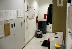 Hallway converted to performer green room on the 6th floor of the Museum of Modern Art. Photo: Abigail Levine