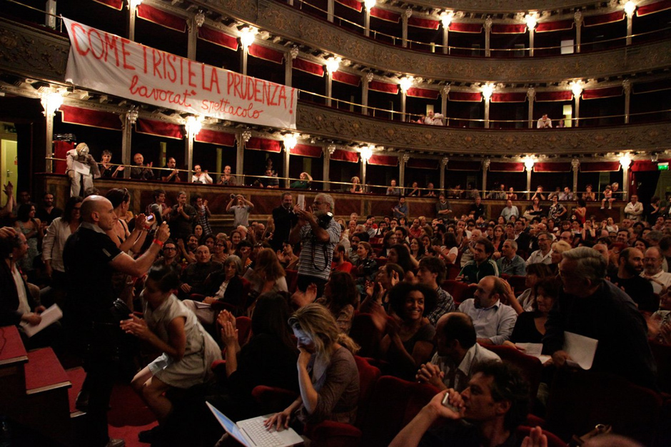 We are workers within the fields of art and knowledge. On June 14, 2011, we occupied the Teatro Valle, the oldest theater in Rome, to save it from privatization and to denounce the state of emergency of Italian culture and politics.