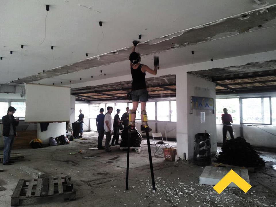 On Saturday May 5th, 2012 many citizens and workers in the fields of arts, entertainment and culture entered and occupied the Galfa Tower, in order to create Macao, a new arts center in Milan. The tower is owned by Fondiaria Sai, whose honorary reference is Salvatore Ligresti. The tower is located in a historic office skyscraper in the center of Milan, which has been left abandoned for more than fifteen years.