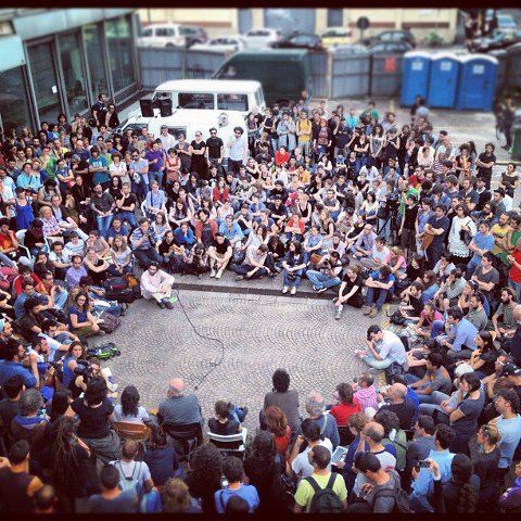 We are artists, curators, critics, guard room, graphic designers, performers, actors, dancers, musicians, writers, journalists, art teachers, students, and everybody who works in the field of art and culture. We’ve been mobilizing for one year, meeting in assemblies to discuss our situation as precarious workers in the fields of artistic production, entertainment, media, entertainment industry, festivals and the so-called economy of the event – in the context of a world increasingly enslaved by Finance that exploits and absorbs the primary task of culture, namely to be an economy of sharing.