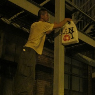 May 23rd, NYC: Moments ago, Brooklyn Judge William E. Garnett released Brooklyn designer Takeshi Miyakawa. He had been in jail since Saturday night after being arrested for placing light sculptures inside shopping bags and hanging them from trees and lamp posts over the weekend. The installations triggered a bomb scare, which led to Mr. Miyakawa’s incarceration at 2 a.m. Saturday morning.