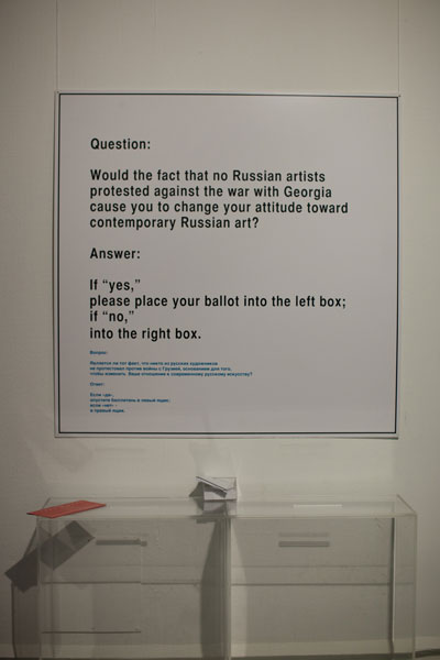 1) Would the fact that no Russian artists protested against the war with Georgia, cause you to change your attitude towards contemporary Russian art?