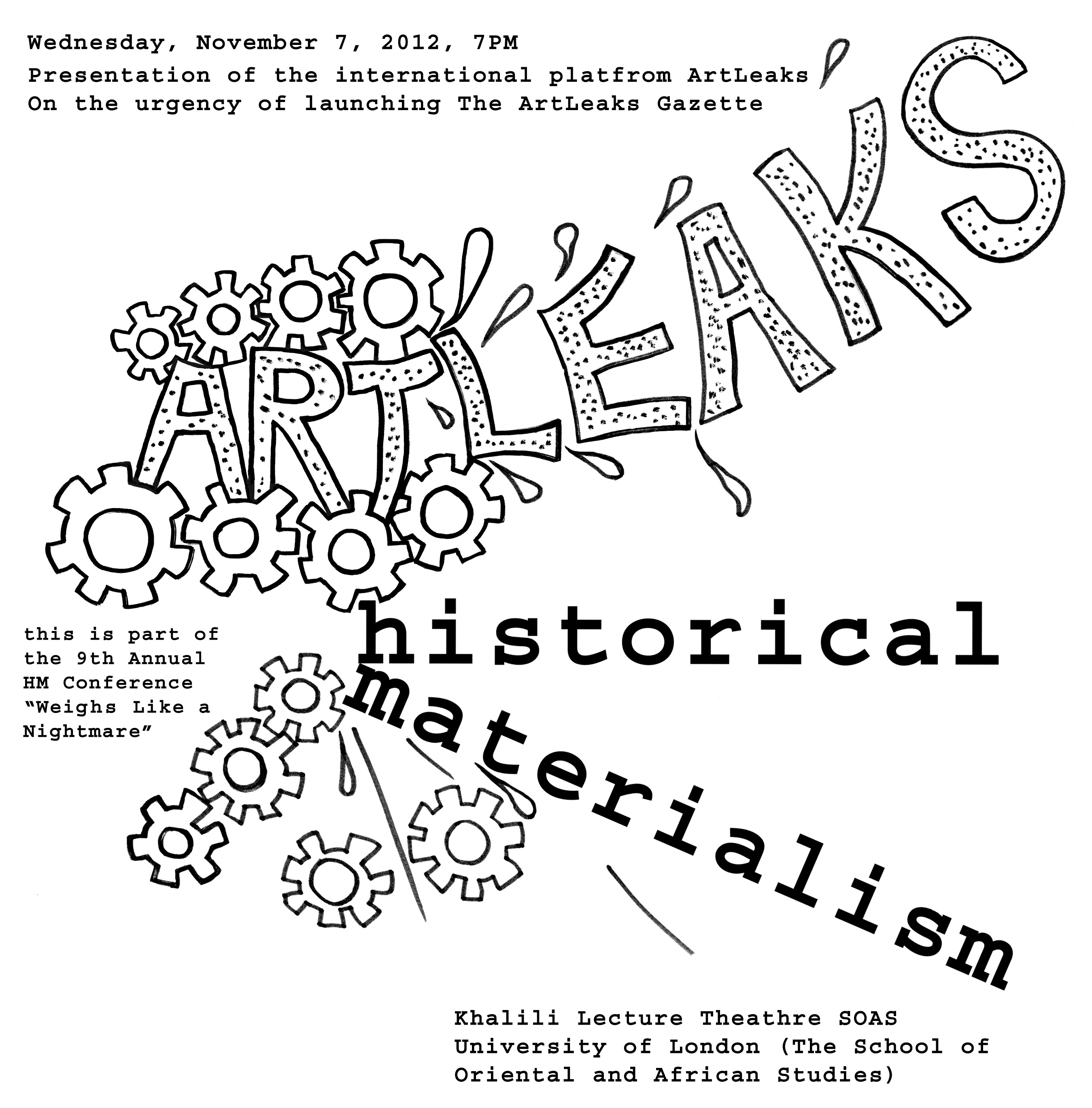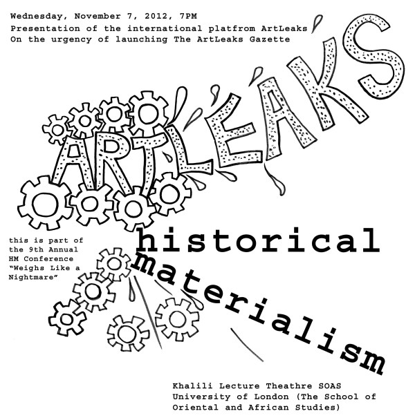 ArtLeaks prepares to make a presentation of its activities and organizes a workshop as part of the 9th Annual Historical Materialism Conference ‘Weighs Like a Nightmare’, London, from 7 PM on Wednesday, November 7th, 2012