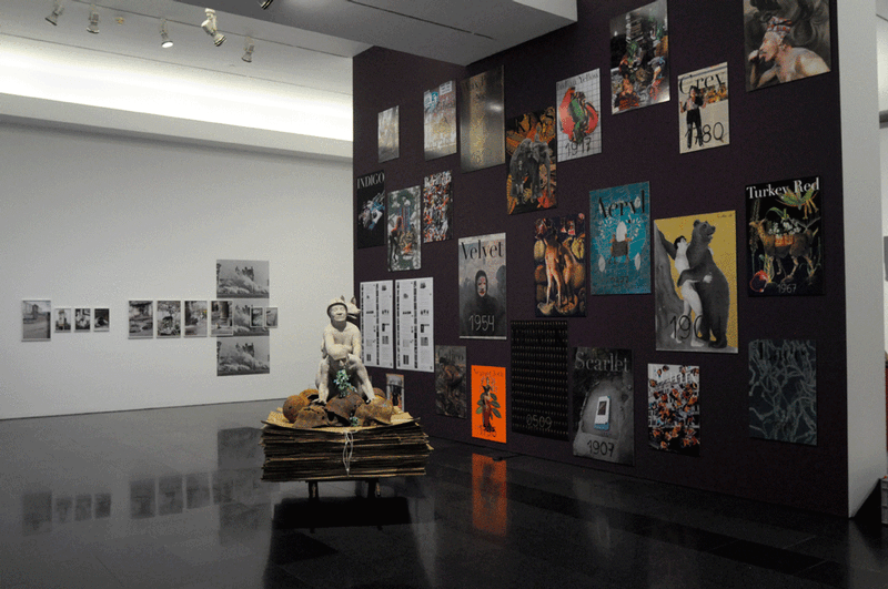 Exhibiton shot, MACBA 2015: Posters: Ines Doujak, John Barker, “The Eccentric Archive”, part of the project “Loomshuttles / Warpaths” (2010-ongoing)