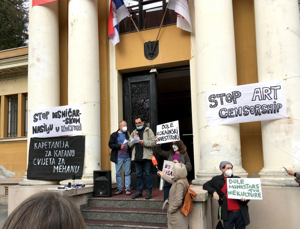 Another dimension of hostility towards cultural workers became visible in the official statement of the Serbian Ministry of Culture (https://www.kultura.gov.rs/vest/sr/5318/saopstenje-ministarstva-kulture-i-informisanja-u-vezi-sa-izlozbom-u-umetnickoj-galeriji-stara-kapetanija-u-zemunu.php )